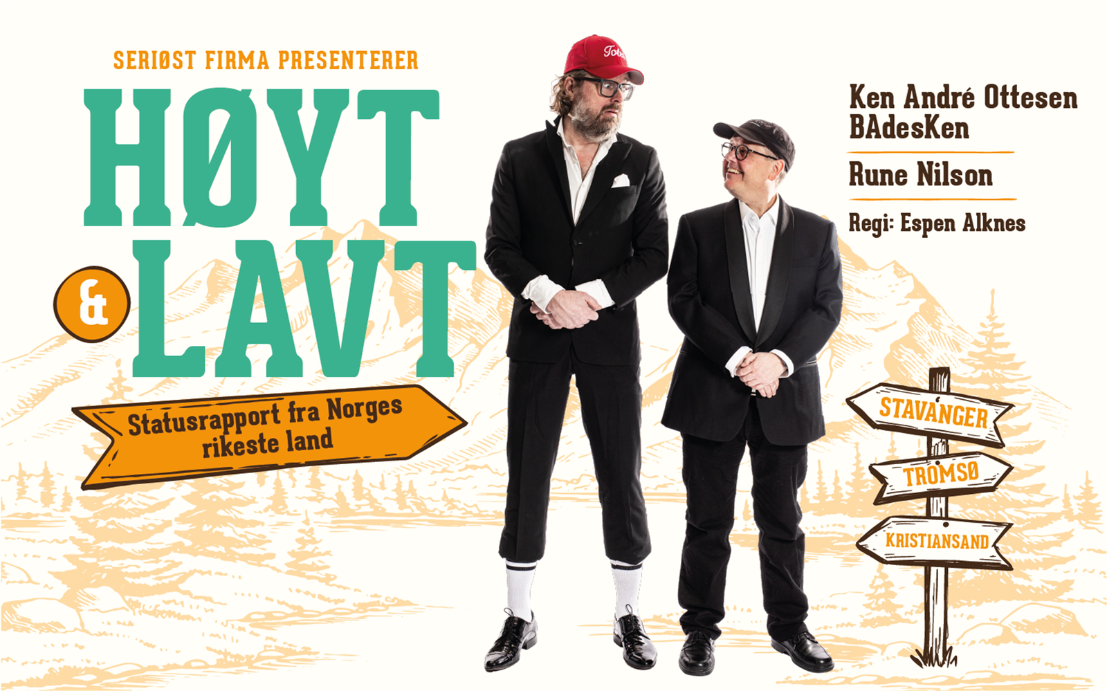 HØYT OG LAVT – EN STATUSRAPPORT FRA NORGES RIKESTE LAND brings together the dynamic comedic talents of Rune Nilson and Ken André Ottesen, known as BAdesKen, performing at the illustrious Ole Bull Scene in Bergen. This comedy event mixes sharp humor and social commentary, showcasing the duo's unique style that has captivated Norwegian audiences with their humorous and realistic skits.