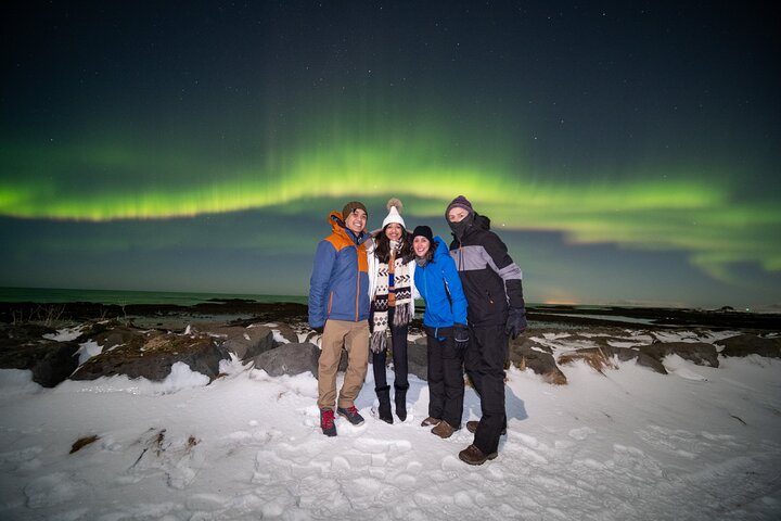 Experience the Northern Lights in a max 7-person group. Benefit from an experienced guide's weather insights, increasing your chances of witnessing the Aurora. Enjoy professional photos, comfy chairs, and warm drinks. If no lights appear, a free second try or full refund is offered, ensuring a memorable, risk-free adventure.