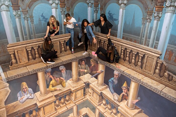 People finds this experience to be an amazing, fun, and interactive activity perfect for photography enthusiasts and families of all ages. Most visitors praise the 80+ hand-painted immersive artworks, friendly and helpful staff, and abundant photo opportunities that consistently exceed expectations[1][2][3][4][5]. Common positives include the creative optical illusions, colorful detailed paintings, and the ability to become part of the artwork through photographs[2][3][4]. Some visitors note minor drawbacks such as difficulty locating the entrance at the back of the shopping center, limited bag storage, and a few reviews mentioning that some paintings could use retouching due to age[2][3][5]. Visitors generally recommend allowing 2 hours minimum for the full experience, especially when visiting with groups, and note that the venue is larger than expected with multiple themed zones to explore[3][4].