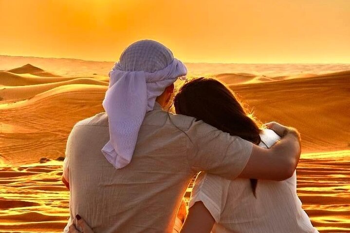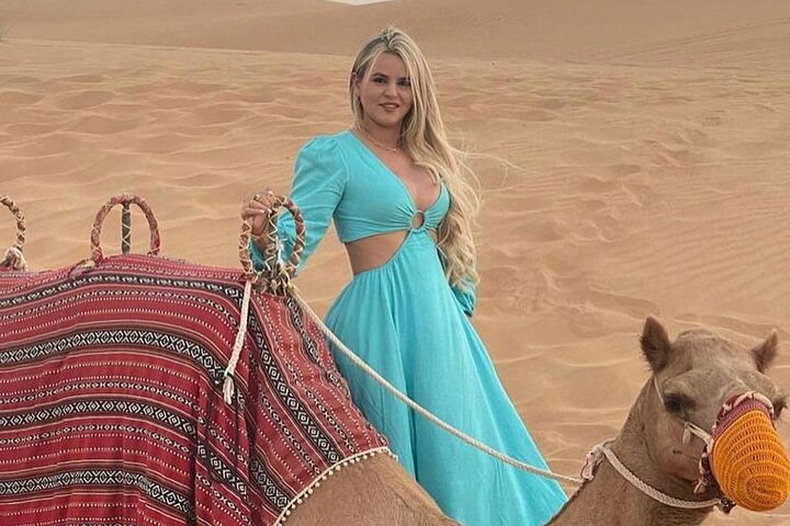 Immerse yourself in the tranquility of a traditional Bedouin-style desert camp, where you'll experience the captivating culture and hospitality of the Arabian Desert. Begin with a gentle camel ride across the serene sands as the sun sets, painting the sky in vibrant hues. As darkness descends, be enthralled by captivating live performances of traditional dance and music, showcasing the region's rich heritage. Indulge in a delectable BBQ dinner under a canopy of stars, savoring authentic flavors and creating lasting memories in this magical desert setting. The evening culminates in a moment of quiet reflection under the vast starlit sky, connecting you to the timeless beauty of the desert landscape.