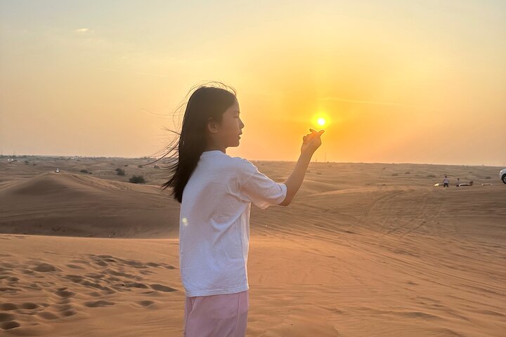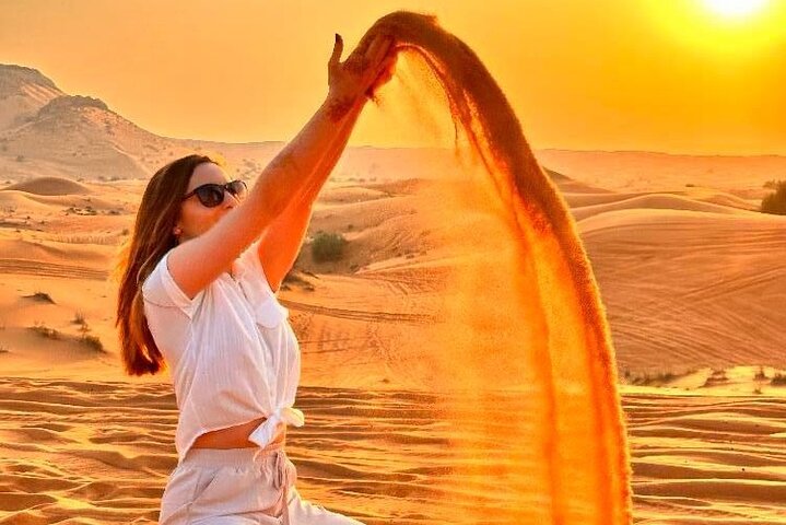 What to Expect: The tour includes an exciting 25-minute self-drive quad bike ride. Visitors can capture amazing photos of the sunset while riding a camel across the dunes. For thrill-seekers, there's sandboarding down the tall slopes. For those who want to try a traditional experience, they can get a beautiful henna design on their hands by an expert.