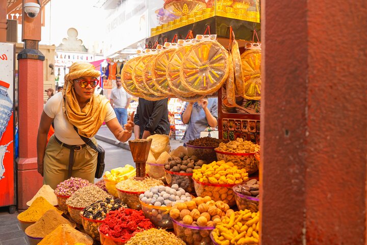 Explore Traditional Souks: Wander through the Gold and Spice Souks, experiencing the vibrant sights and smells of Dubai's traditional markets.