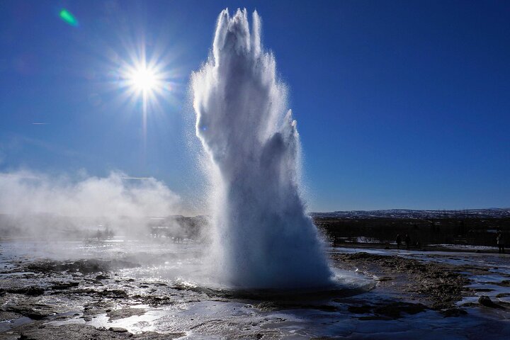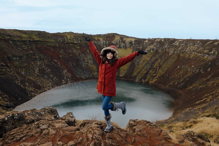 From Reykjavik: Golden Circle, Bruarfoss & Kerid Volcano Crater. This bus tour takes a small group on an adventure through Iceland's famous Golden Circle. See amazing places like Þingvellir National Park, the Gullfoss waterfall, and the Geysir geothermal area.