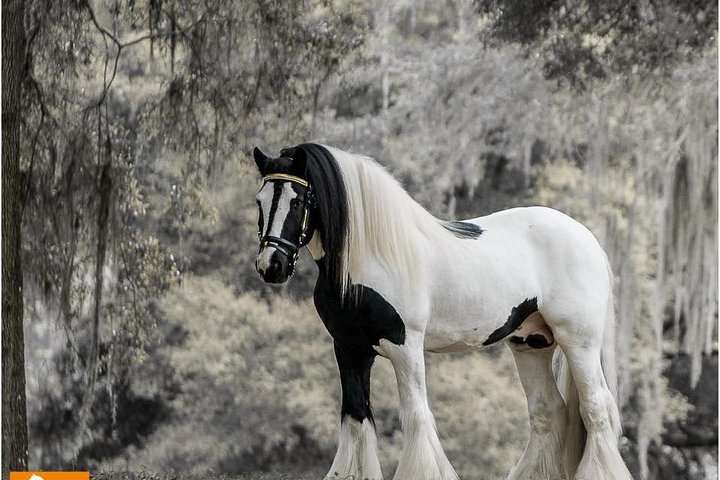 Gypsy Gold Farm Tour, near Orlando, offers a unique encounter with Gypsy Vanner Horses, America's first. Delve into British Gypsy culture and witness these stunning horses firsthand. Enjoy a walking tour and a photo opportunity. A captivating journey into equine history awaits. Involves Animals, Nature and Wildlife Tours, Walking Tours, Nature Walks.