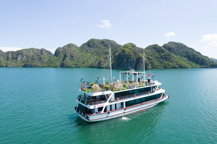 The tour includes a buffet or set lunch, music on the sundeck, all sightseeing tickets as per the itinerary, an English/Vietnamese-speaking tour guide, Jacuzzi, a free souvenir photo with your national flag, insurance, Wi-Fi, life jackets, onboard facilities, a Sunset Party, kayaking or bamboo boat, a welcome drink, a 6-hour cruise, and a cold towel. It excludes airfare, accommodation, drinks not listed in the inclusions, tips, VAT, and other personal expenses. With comfortable transportation and expert guides, this tour promises a memorable adventure through one of Vietnam's most iconic landscapes.
