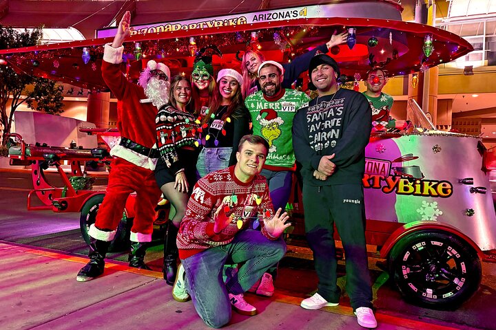 Customers generally say this Holiday Lights Bar Crawl Tour in Old Town Scottsdale is a fun and festive way to experience local holiday spirit, praising the engaging party bike captain, lively atmosphere, and the unique way to see the holiday lights. Positive feedback often highlights the safe and organized nature of the tour, along with the enjoyable bar stops and holiday decorations. Some negative points include the physical effort required to pedal, which may not suit everyone, and the tour's unsuitability for wheelchairs or those with serious medical conditions. Overall, the tour is highly recommended for groups of adults looking for a memorable holiday night out.