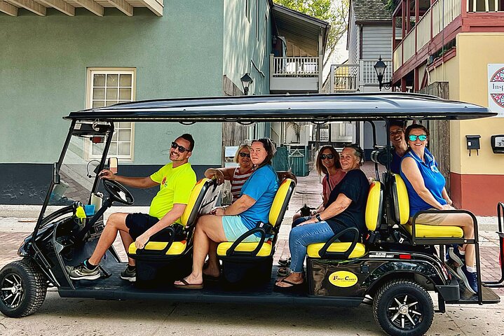 Riding Through History of St. Augustine: Premium Tour with PiCk Up. This tour is a fun ride through the oldest city in the USA! It's perfect for small groups who want a close-up look at St. Augustine's most famous places. The tour uses a special low-speed vehicle (LSV) to explore the city.