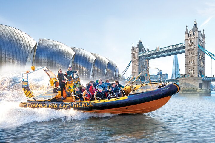 Experience the 'Ultimate Tower Blast,' a 40-minute high-speed speedboat adventure departing from Tower Millennium Pier. Feel the adrenaline as powerful engines blast you past London's iconic landmarks, including Greenwich and the Thames Barrier, all while enjoying a chart-topping playlist and live commentary. Life jackets and ponchos provided.