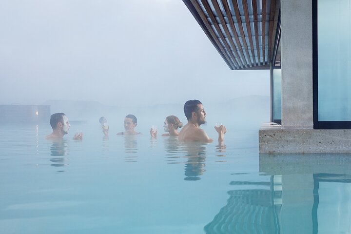 Blue Lagoon Admission Including Return Transfers from Reykjavik. Discover Iceland's famous Blue Lagoon, a natural wonder known for its milky blue waters and healing properties. People come from all over to swim in this special water. It's like a giant spa made by nature!