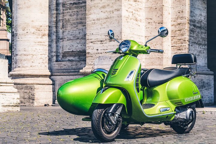 Ride in Style: Explore Rome in a custom-built Vespa sidecar.