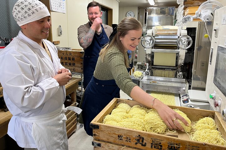 The adventure starts at a family-owned noodle factory in Yokohama, where three generations have perfected the art of ramen. Participants will discover the history and secrets behind crafting the perfect noodle. The host guides guests in creating custom noodles, selecting from various doughs and cutting blades to match their taste.